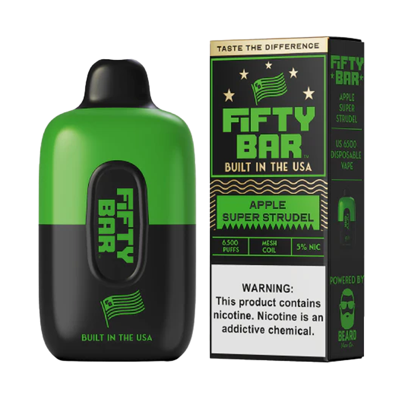 Experience long-lasting satisfaction with the Fifty Bar 6500 Puffs Disposable Vape. Filled with 14ml of American-made vape juice by Beard Vape Co., each device delivers 5% salt nicotine for a smooth and consistent hit every time. Whether you prefer non-iced dessert flavors or refreshing iced fruity blends, Fifty Bar offers a flavor for every palate.